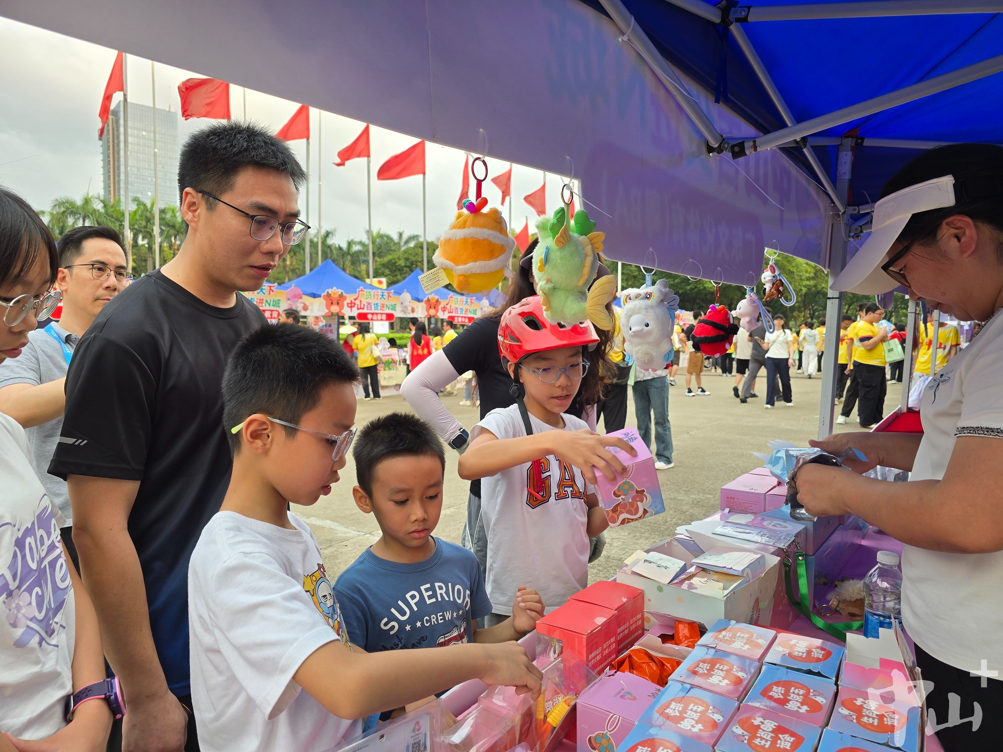 中山市籃球協(xié)會首次進駐“廣貨行天下·中山百貨進N城”主題集市,為現(xiàn)場增添了一份獨特的互動樂趣。攤位上不僅有“冠軍牛”卡通形象的鑰匙扣、冰箱貼,還有特制飲品。中山市籃球協(xié)會還在攤位前設(shè)置了簡易籃筐,市民投中一球即可獲得攤位產(chǎn)品購買優(yōu)惠。這一玩法迅速吸引了不少人排隊嘗試。
