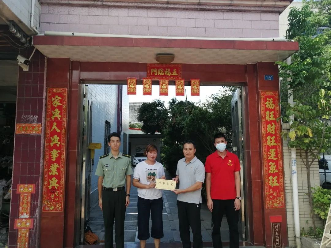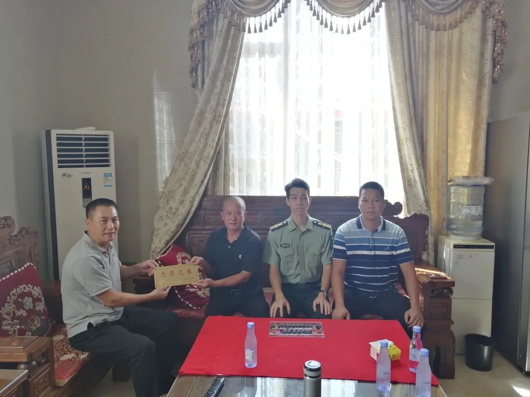 為進一步鞏固和發(fā)展軍政軍民團結,弘揚新時代擁軍優(yōu)屬的優(yōu)良傳統(tǒng),推進軍人榮譽體系建設,營造關愛軍人的濃厚社會氛圍,7月15日上午,阜沙鎮(zhèn)武裝部、退役軍人服務中心聯(lián)合走訪今年入伍的6名新兵家屬,為其家庭懸掛“光榮之家”門牌,送上入伍電子相冊,了解新兵在部隊的訓練、學習和生活情況,增強軍屬家庭的榮譽感和自豪感,讓他們切實感受到黨和政府的關愛和溫暖。 在新兵周志偉家中,其父親周錦元自豪地說:“雖然非常舍不得志偉離開我們,但是送他到部隊鍛煉,為國家作貢獻,心里還是很高興的,也非常自豪。今天你們來給我家掛光榮牌、送相冊,我們?nèi)倚睦锱?,非常感謝黨和政府對我們的關心?!?/p>一人參軍,全家光榮 一塊刻著“光榮之家”的小小牌匾 對軍屬家庭來說卻是一份特殊的“禮物” 牌匾雖小