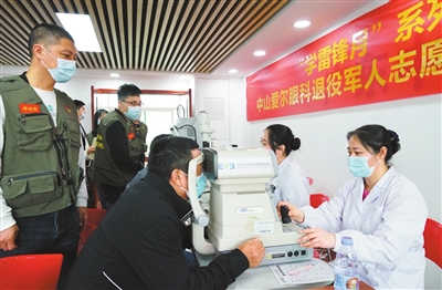 中山市愛爾眼科醫(yī)院去年加入“崇軍特惠聯(lián)盟”,今年成立全市首支退役軍人專業(yè)醫(yī)療志愿服務隊。半年來,該院開展“眼健康”專場活動,覆蓋全市17個鎮(zhèn)街,篩查退役軍人1363人,完成手術治療210人,手術費用按政策全免。