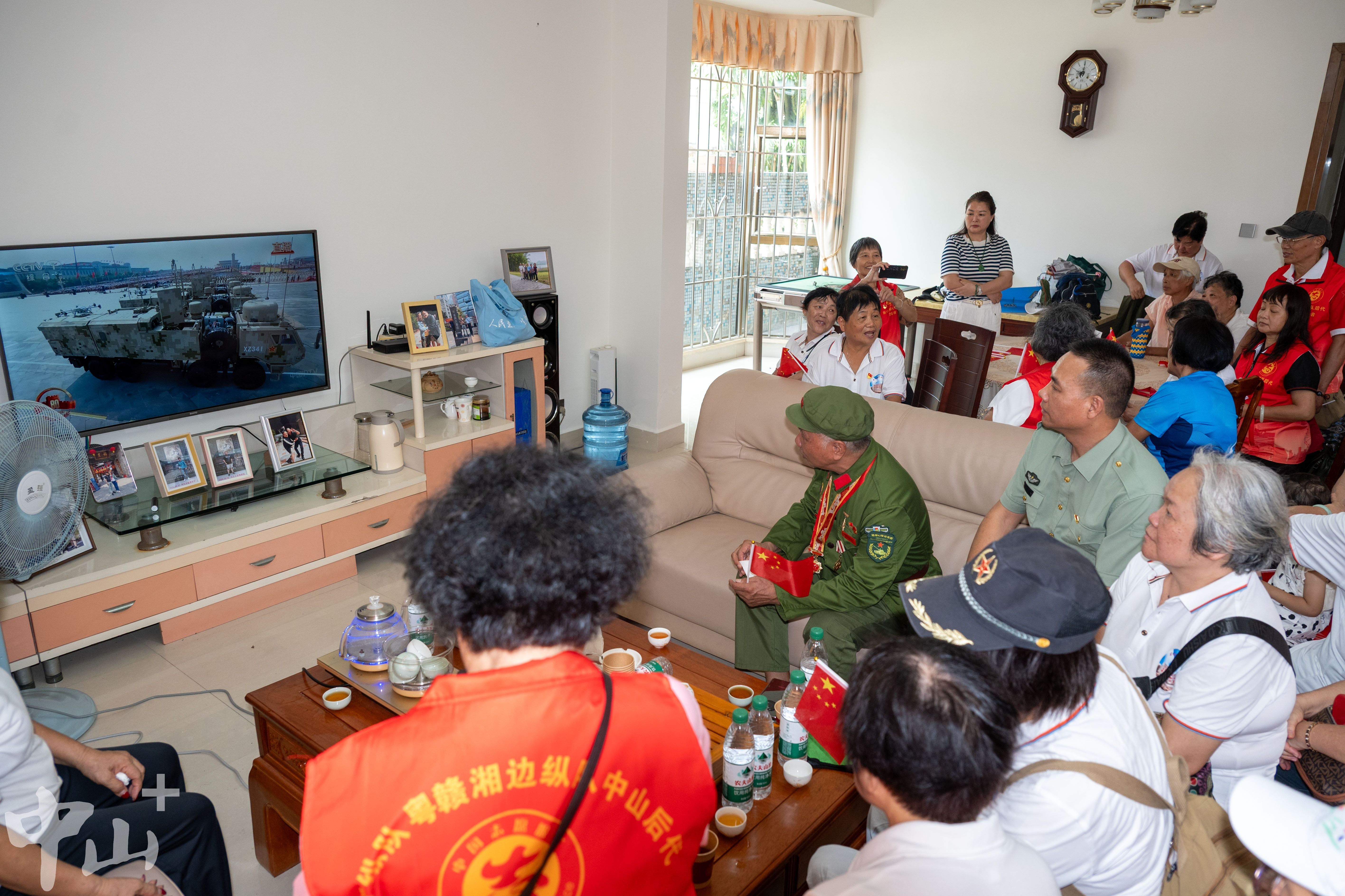 9月3日上午,廣東人民抗日游擊隊(duì)東江縱隊(duì)、粵贛湘邊縱隊(duì)中山后代和功勛老兵齊聚抗戰(zhàn)時(shí)期“廣東省革命老區(qū)村莊”——南朗街道白企村,共同觀看紀(jì)念中國(guó)人民抗日戰(zhàn)爭(zhēng)暨世界反法西斯戰(zhàn)爭(zhēng)勝利80周年大會(huì)直播盛況。他們紛紛表示,看到強(qiáng)大的祖國(guó)越來(lái)越繁榮,非常激動(dòng),也非常自豪。 9月3日上午,東江縱隊(duì)、粵贛湘邊縱隊(duì)中山后代和功勛老兵齊聚在一起,觀看閱兵盛典。見習(xí)記者 張景天 攝