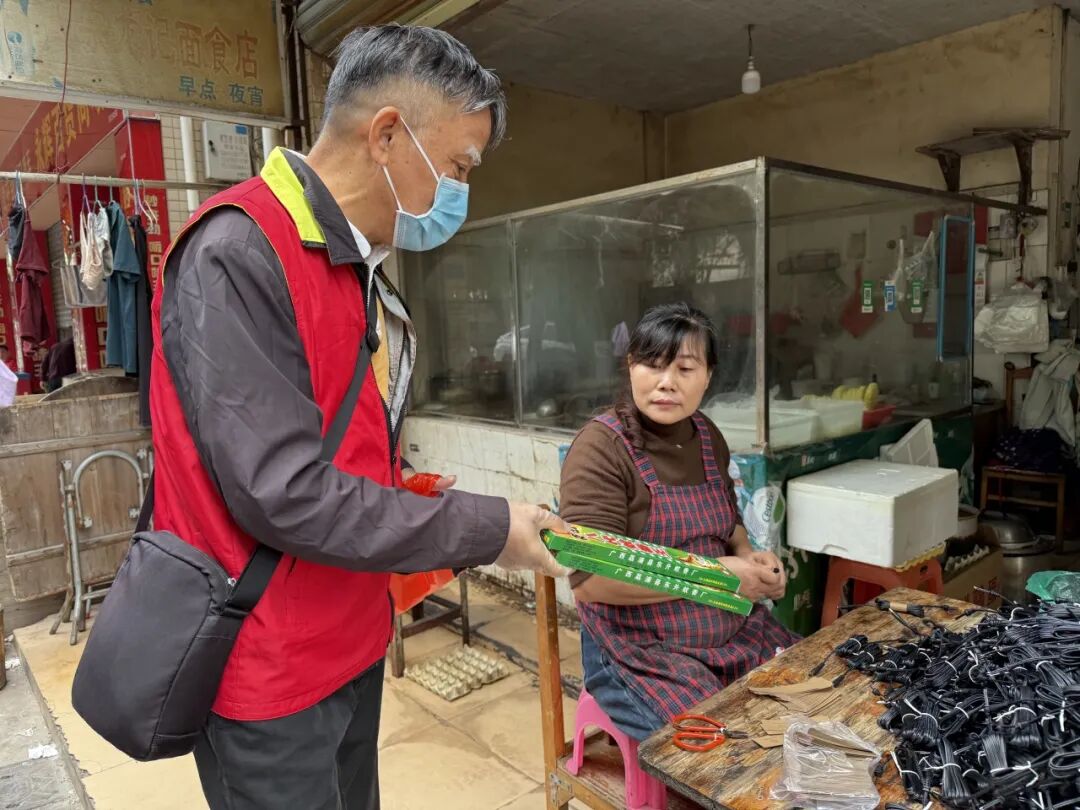 除了走進村(居)民家中普及防蚊知識,各村(社區(qū))“兩熱”防控行動組還將宣傳觸角延伸至轄區(qū)商鋪。行動人員手把手幫商戶檢查花瓶積水、廢舊水桶等蚊蟲孳生隱患點,反復提醒商戶做好“翻盆倒罐”,嚴格落實“門前三包”?!盎卓涎艧?、登革熱可不是普通發(fā)燒,關(guān)節(jié)疼起來特別難受,傳播源就是伊蚊,咱們把衛(wèi)生搞好了,蚊蟲少了,‘兩熱’自然就不來了?!币痪渚渫ㄋ滓锥闹v解,讓防控知識真正走進商戶、融入居民生活,實現(xiàn)入腦入心。