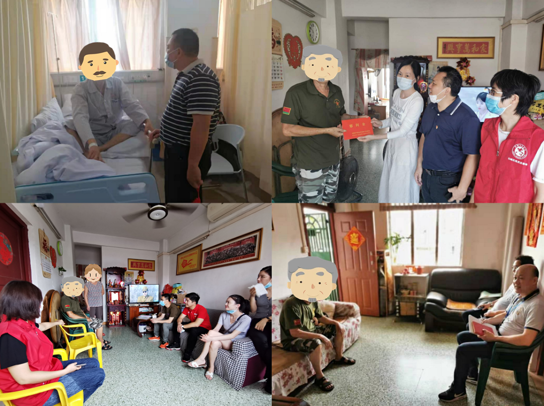 吳容基于1978年入伍,是石岐參戰(zhàn)退役軍人。妻子由于身體原因無法外出工作,小兒子也沒有固定工作,全家依賴吳容基的退休金過日子,房子也是租住的。2019年8月,吳容基參加體檢時查出患有肝癌,手術(shù)、吃藥、化療等產(chǎn)生的巨額費(fèi)用讓全家壓力劇增。 民權(quán)社區(qū)和石岐退役軍人服務(wù)中心了解到吳容基的情況后,想方設(shè)法為其解決實際困難,幫助其走出困境,除了按照優(yōu)撫對象醫(yī)療費(fèi)用比例為其報銷了醫(yī)藥費(fèi)用外,還先后幫助吳容基申請了街道優(yōu)撫對象臨時困難救助、市臨困救助、市特別醫(yī)療救助、市紅十字會救助等多項幫扶救助,救助金額達(dá)到1.6萬余元,部分緩解了其家庭經(jīng)濟(jì)壓力。 逢年過節(jié),石岐公共服務(wù)辦、退役軍人服務(wù)中心、社區(qū)以及市青年企業(yè)家協(xié)會等還專程去探訪慰問。吳容基重病住院期間,民權(quán)社區(qū)黨委書記和民政專干專門到醫(yī)院探訪,傳達(dá)黨和政府對參戰(zhàn)老兵的關(guān)懷。