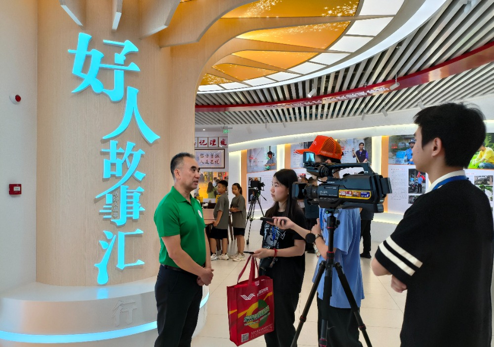 本次調(diào)研中,來自中央、省、市約20家媒體的記者,先后走訪東鳳鎮(zhèn)退役軍人服務中心、中山好人館等地。通訊員供圖 16日上午,媒體采風團來到了中山好人館,退役軍人代表李克和孫宏寧帶領采風團觀摩好人館,并介紹了退役軍人在志愿服務上如何為推動全市的社會道德建設貢獻力量?!爸猩酵艘圮娙死弥驹阜眨麄髁塑娙俗黠L優(yōu)良的傳統(tǒng),這種公益形式也是對社會力量的補充,能夠對全社會起到榜樣作用?!绷私獾街猩绞胁蹞碥娭驹阜贞犐钊牖鶎娱_展國防和愛國主義教育、中山市擁軍支前紅旗服務隊參與各項日常生活應急救援的事跡后,《小康》雜志記者王莉華說,中山市退役軍人深度參與公益所展現(xiàn)出的擔當和作為給她留下深刻印象。中國報道網(wǎng)《前沿資訊》欄目主編陳偉贊發(fā)出感慨,“志愿服務隊的工作非常扎實,退役軍人服務中心在用心用情服務退伍老兵上也做得很到位?!?/p>  退役軍人代表李克接受采訪。通訊員供圖