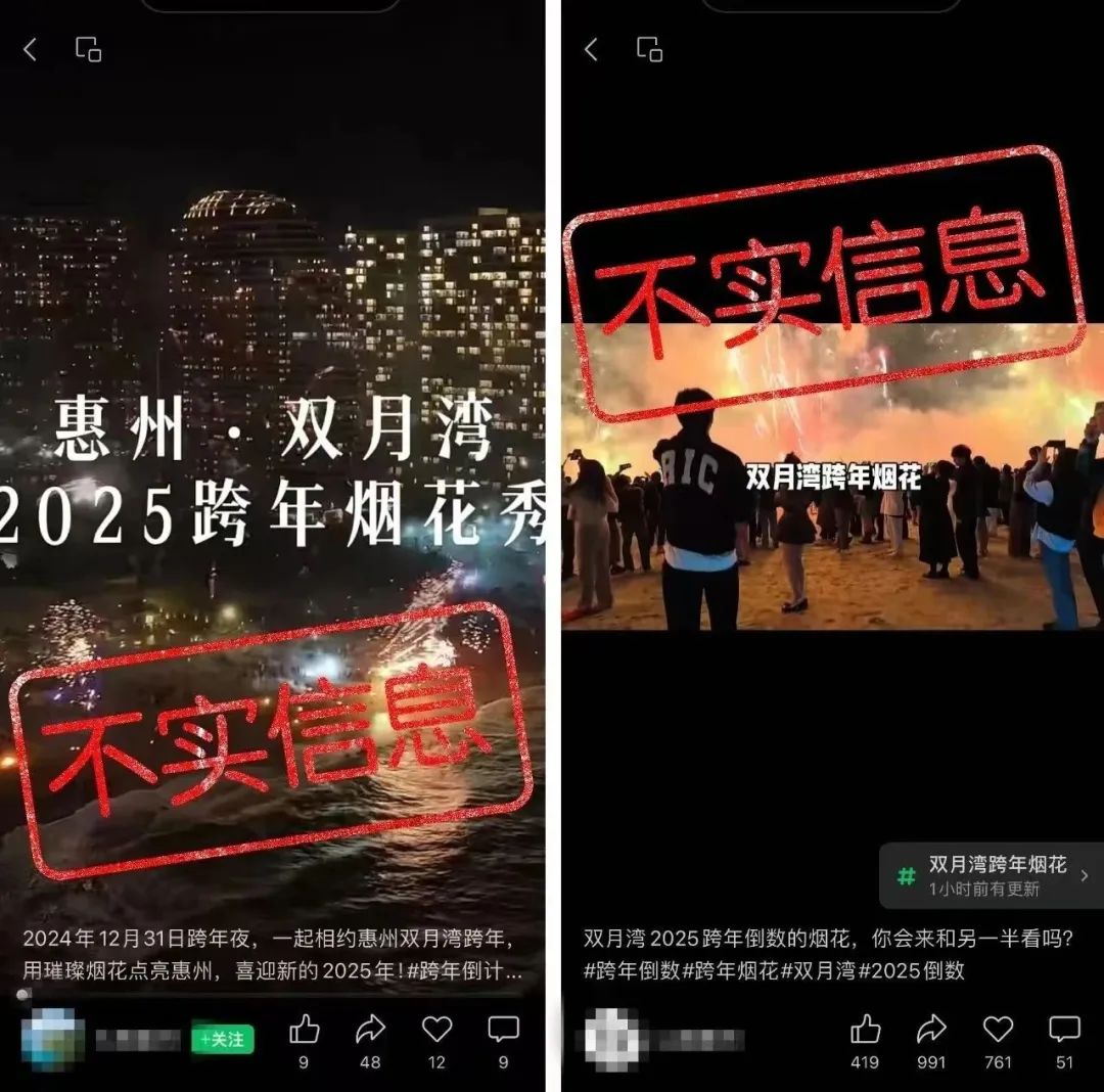 網(wǎng)絡(luò)上出現(xiàn)“惠州雙月灣2025跨年煙花秀”