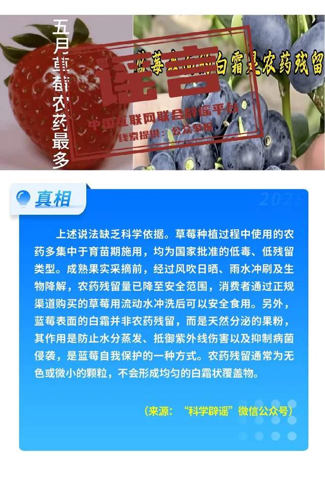 5月的草莓農(nóng)藥最多,不能吃?藍(lán)莓表面的白霜是農(nóng)藥殘留?