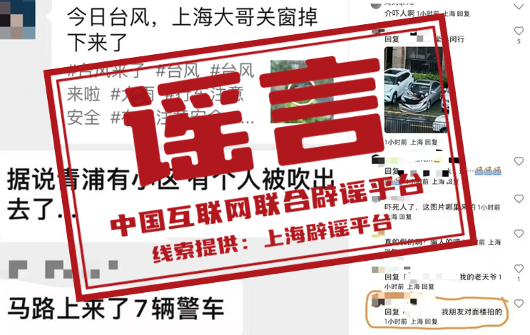 真相:臺風“貝碧嘉”影響上海期間,社交平臺和部分聊天群出現(xiàn)上海某小區(qū)居民被臺風從高樓吹落的消息,有的說在青浦區(qū)、有的說在閔行區(qū)。經(jīng)核查,該視頻內(nèi)容系外省市有人輕生跳樓。個別違法人員在不知道事發(fā)地點和墜樓原因的情況下,為博取流量而張冠李戴,將事發(fā)地編撰為上海浦東、閔行、青浦等地,并發(fā)布在網(wǎng)上,引起群眾恐慌,造成惡劣社會影響。目前,8名編造傳播謠言的違法人員均已被警方依法處罰。(來源:“上海網(wǎng)絡(luò)辟謠”微信公眾號)