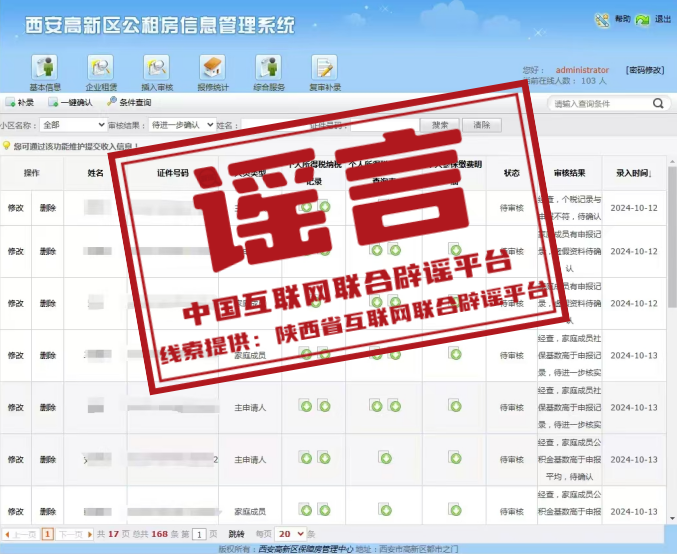 真相:近期,有不法分子偽造西安高新區(qū)公租房信息管理系統(tǒng)審核界面,在網(wǎng)絡(luò)上散布公租房資格審核虛假信息,引發(fā)關(guān)注。對此,西安高新區(qū)住房和城鄉(xiāng)建設(shè)局發(fā)布《關(guān)于警惕不法分子偽造虛假信息的聲明》稱,切勿輕信網(wǎng)絡(luò)、微信中發(fā)布的高新區(qū)公租房相關(guān)政策虛假信息及類似委托代辦信息,以避免個(gè)人經(jīng)濟(jì)、財(cái)產(chǎn)受到損失。高新區(qū)公租房資格審核全程不代辦、不收費(fèi),審核結(jié)果均以市級六部門聯(lián)審反饋結(jié)果為準(zhǔn)。同時(shí),任何通過違規(guī)代辦以及提供虛假材料騙取公租房資格的,一經(jīng)發(fā)現(xiàn),將嚴(yán)肅查處,取消保障資格。(來源:陜西省互聯(lián)網(wǎng)聯(lián)合辟謠平臺)