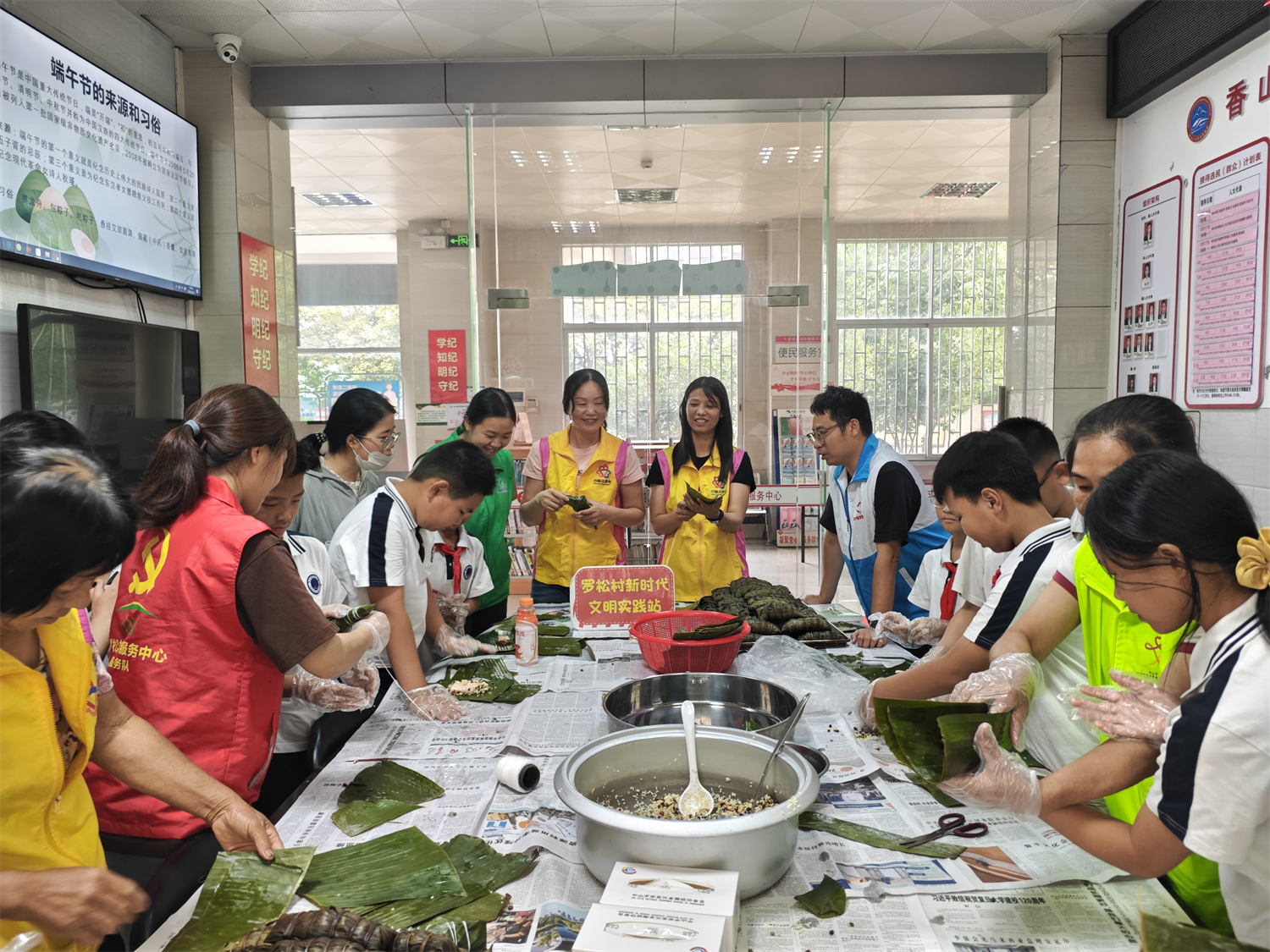 活動(dòng)伊始,禁毒社工向?qū)W生們展示仿真毒品模型和禁毒宣傳單張,用簡(jiǎn)單易懂的語(yǔ)言向?qū)W生們介紹毒品的種類、危害以及防范方法。隨后,工作人員講授了端午節(jié)的來(lái)源及習(xí)俗,并教授學(xué)生們?nèi)绾伟兆樱瑢W(xué)生們紛紛拿起粽葉跟著工作人員忙活起來(lái),不一會(huì)兒,一只只飽滿的粽子便呈現(xiàn)了。